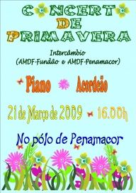 A Academia de Música e Dança do Fundão assinalará a entrada da Primavera com um concerto no pólo de Penamacor, dia 21 de Março às 16h. Este concerto contará com a presença de alunos da Academia do Fundão e de Penamacor que executarão obras para piano e acordeão.